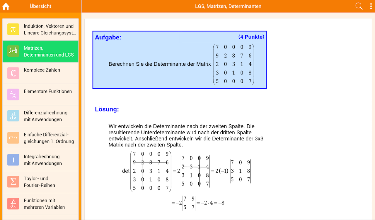 Die ausführlichen Lösungen können verwendet werden, um sich die Themen durch die